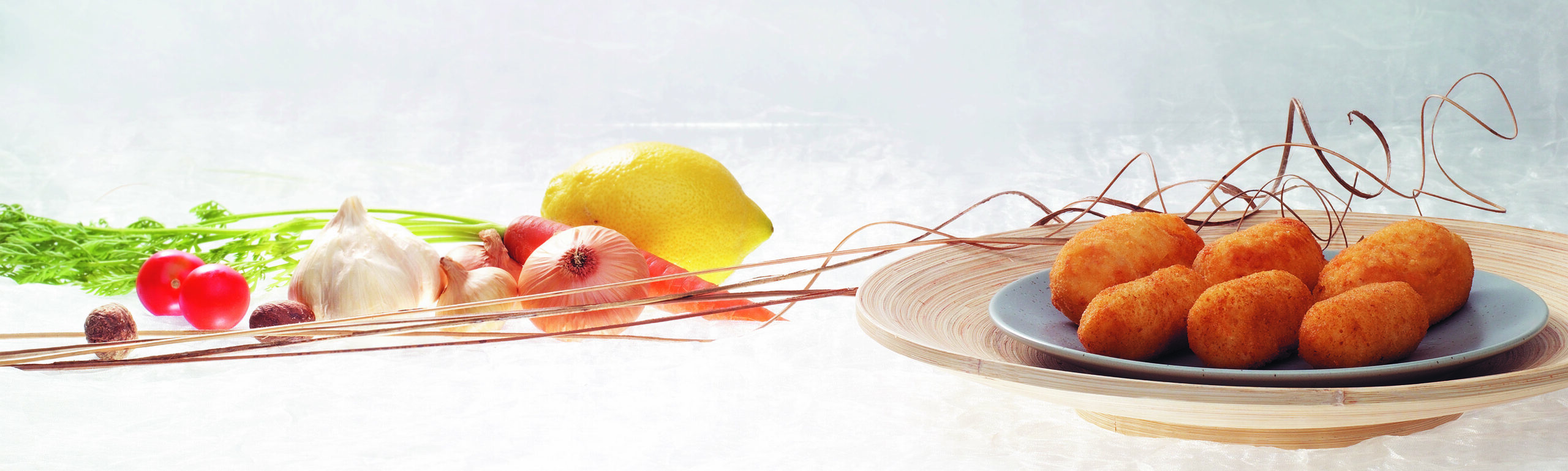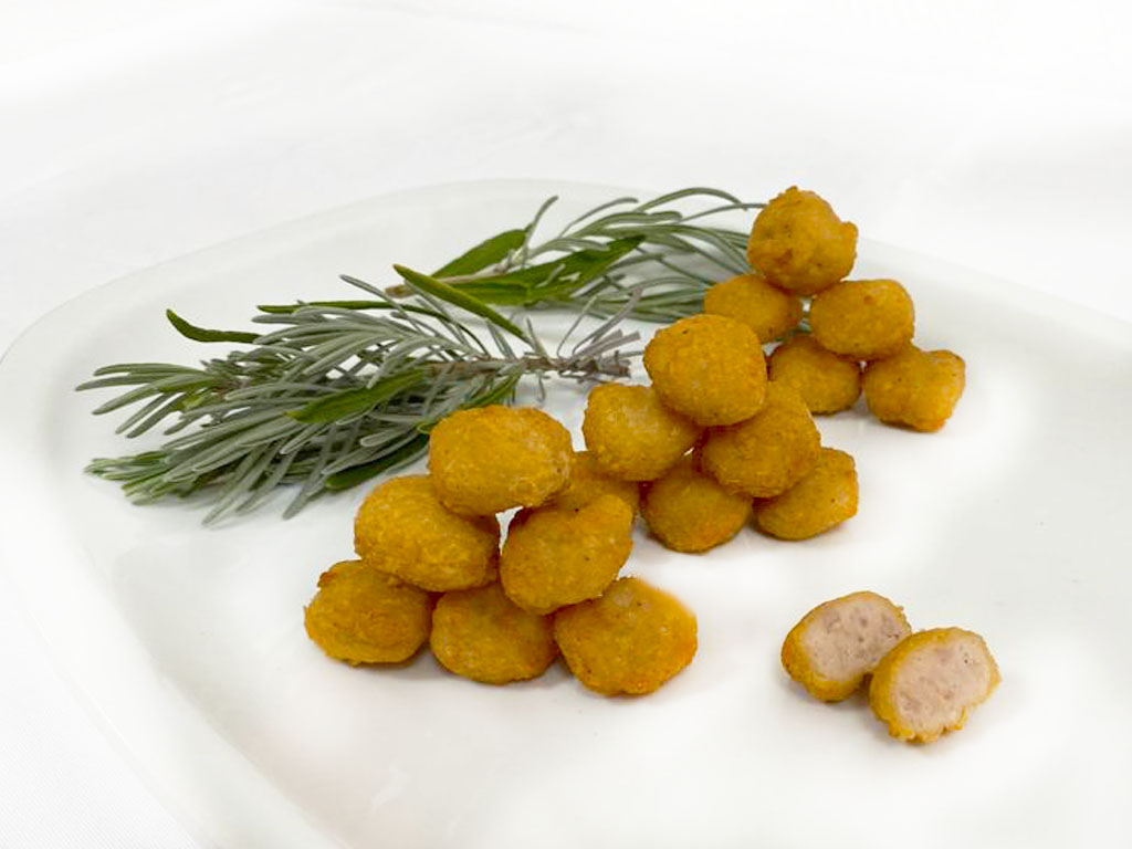 Jugosas materias primas bañadas en cremosa bechamel y recubierta de un pan rallado casero utilizando colorantes naturales como el pimentón y la cúrcuma.