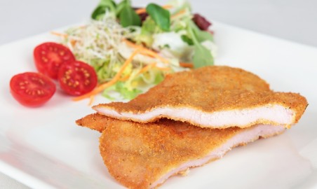 Producto empanado elaborado a base pollo crudo procedente del contramuslo y congelado.